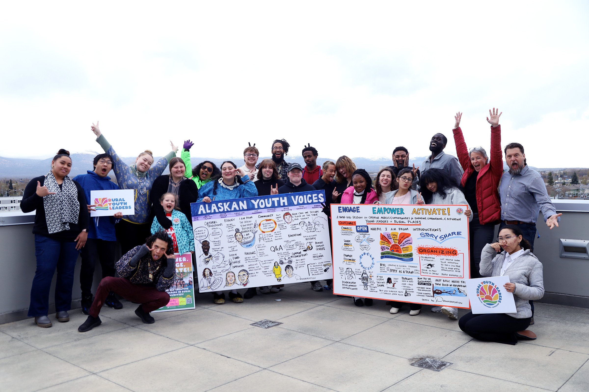 As part of their work, the Rural Youth Collaborators traveled to Anchorage, Alaska in April of 2025 for the Rural Summit to support the public announcement of RYL. In addition to several days of creative leadership engagement, the youth Collaborators co-led an immersive session at the Rural Summit for 80 people about their own leadership experiences through our shared work together. The youth Collaborators and their stewards were joined at the Rural Summit by a group of Alaskan youth leaders who had the opportunity to present a full plenary session to nearly 700 people about their communities, challenges and visions for the future.